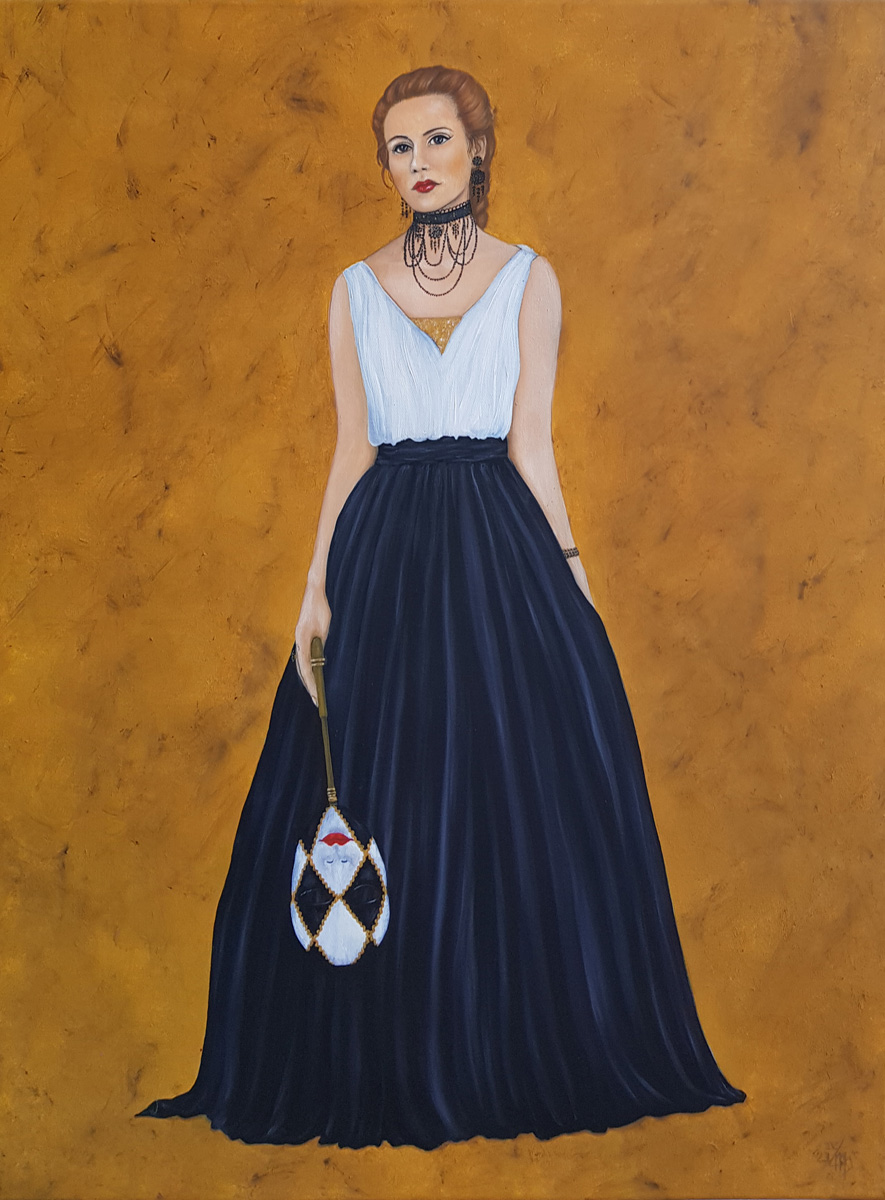 - Frau mit venezianischer Karnevalsmaske (schwarz-weiß)