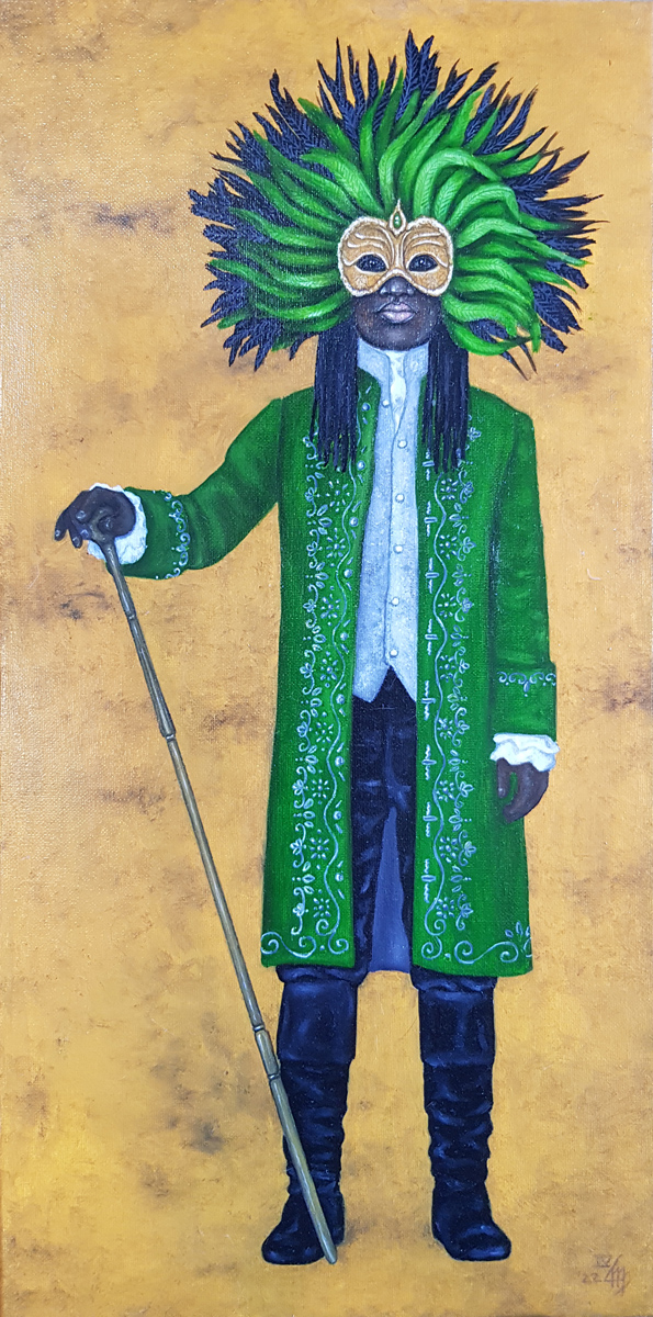 - Mann mit venezianischer Karnevalsmaske (gold-grün)